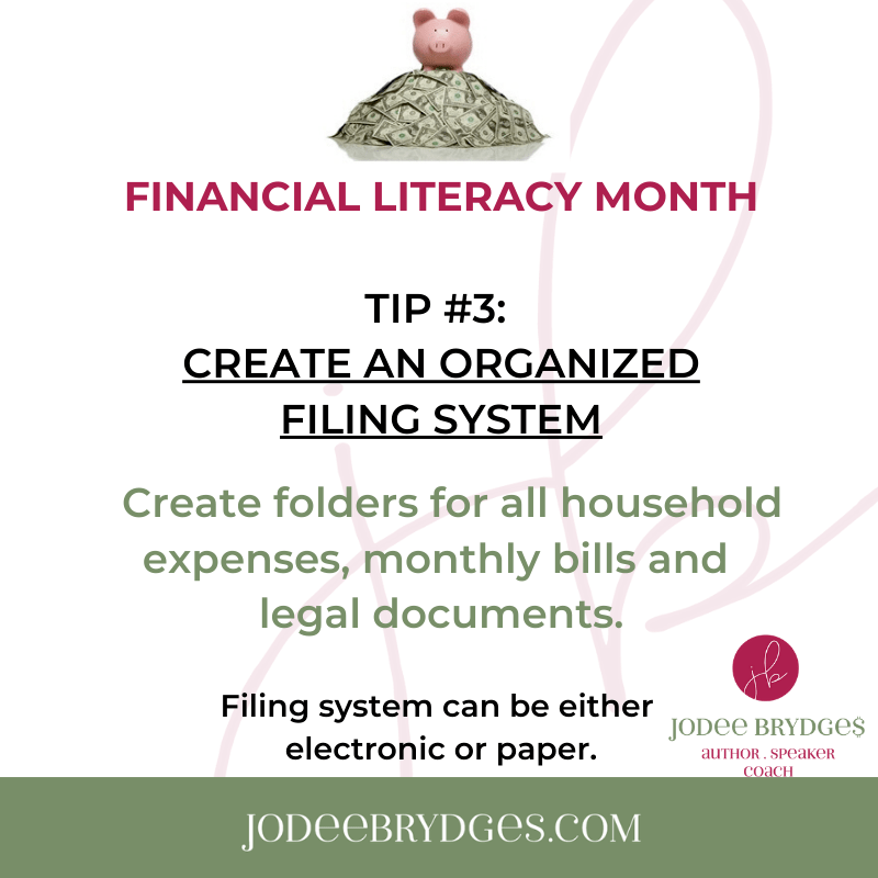 Having an organized filing system allows you to easily access documents when needed (e.g., filing taxes, applying for a mortgage), fix budget leaks, and stay on track with your financial goals going forward.